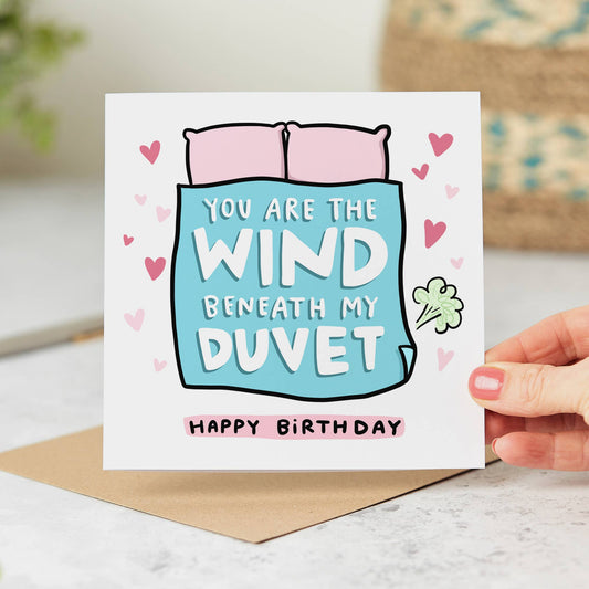 Wind Beneath My Duvet - Funny Romantic Birthday Card