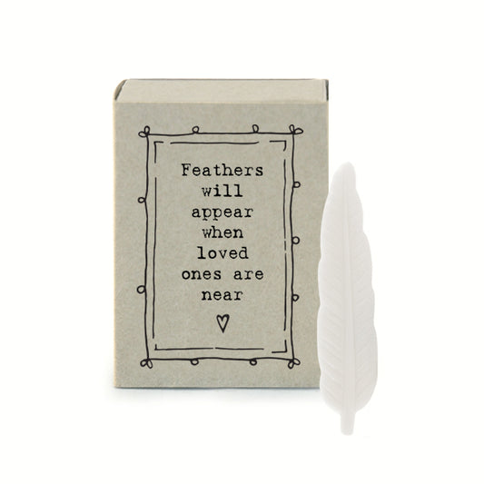 East of India “ feathers appear when loved ones are near” porcelain matchbox