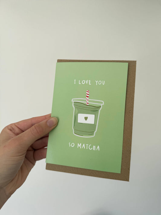 Gallerybylara - "I love you so matcha" greeting card. A6. Matcha