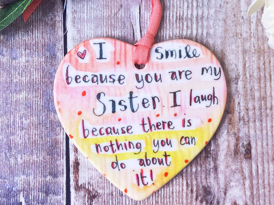 Little Heart - I love that you're my Sister Coloured Ceramic Heart