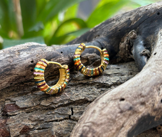 Ocean Ripples - 18ct Gold Plated Colourful Dome Huggie Earrings