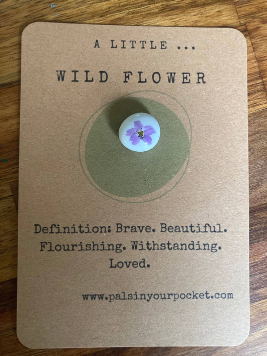 Pals in your Pocket - Personalized Wildflower Pebble With Purple Charm And Quote