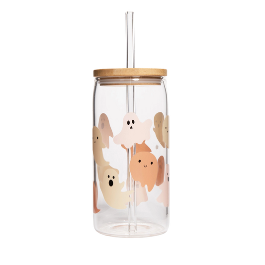 Ghosts 17 oz Can Glass w/ Straw & Lid - Halloween Gift