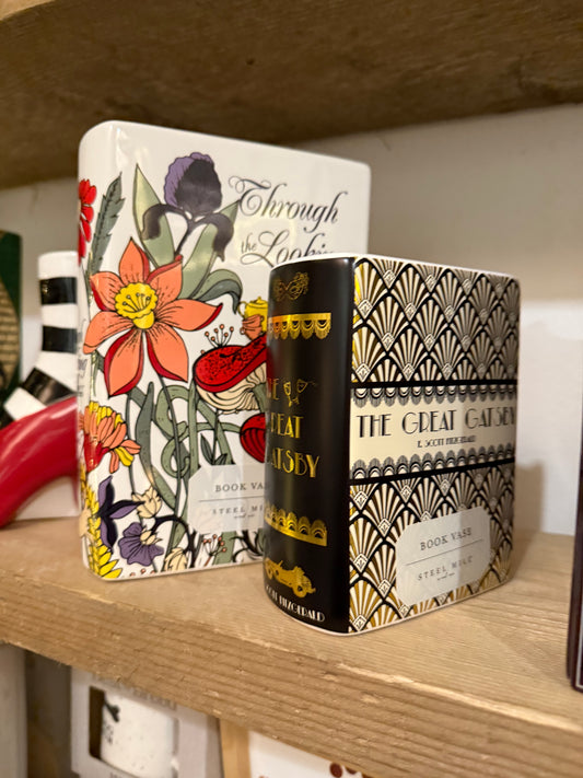Large Alice in Wonderland ceramic book vase - book lover gift
