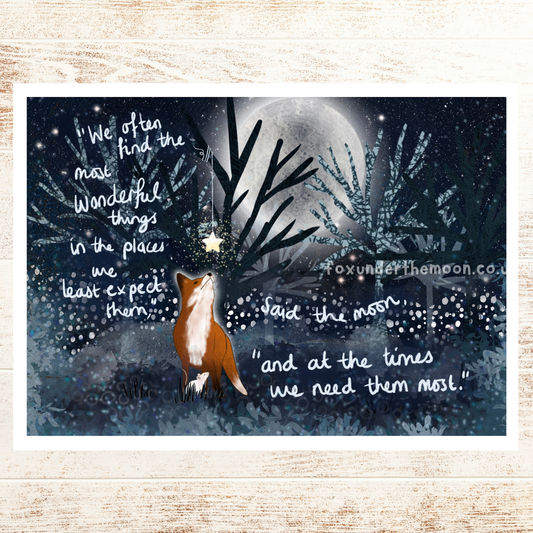 Fox Under The Moon - A4 Art Print- Wonderful things