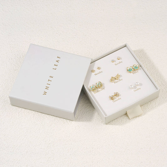 White Leaf - 7 Days Floral Earrings Box Set in Gold
