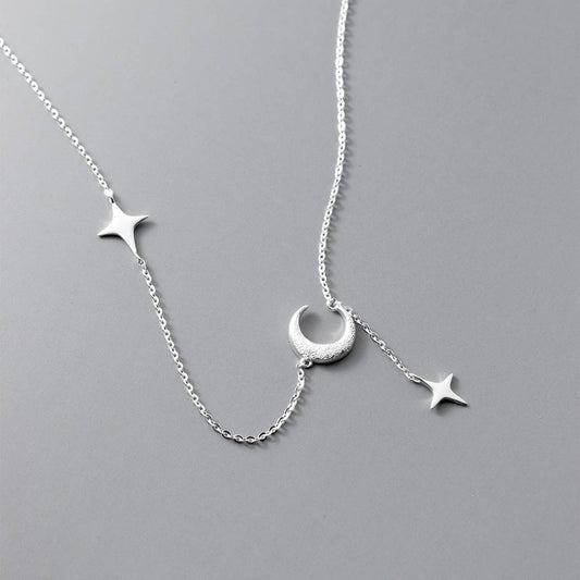 White Leaf - Star & Moon Drop Necklace in Sterling Silver