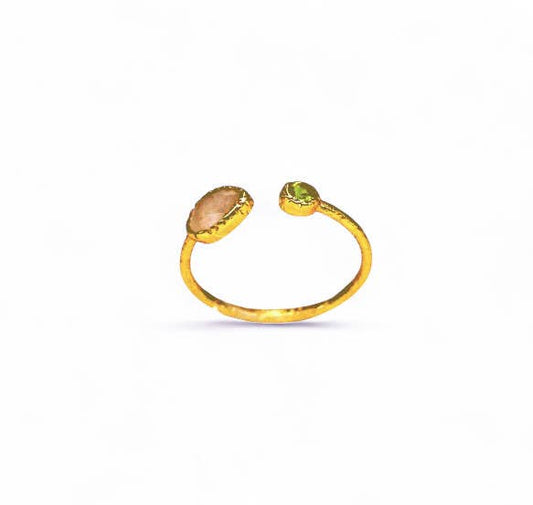 White Leaf - Set Stone Ring in Gold with Rainbow Moonstone & Peridot