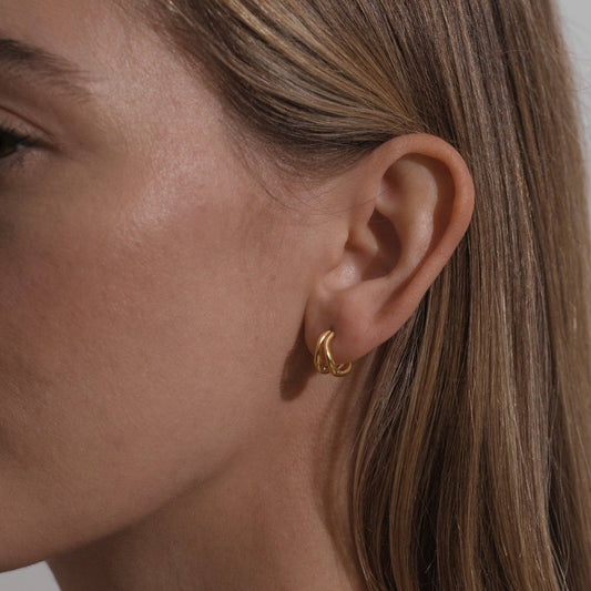 Sterling Silver Double Lilac Crystal Piercing Earring in Gold
