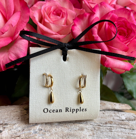 Ocean Ripples - 18ct Gold Plated Cubic Zirconia Drop Huggie Earrings