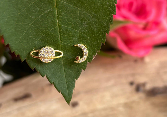 Ocean Ripples - 14ct Gold Plated Cubic Zirconia Mismatched Planet Earrings