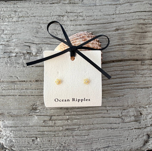 Ocean Ripples - 14ct Gold Plated Mini Hollow Flower Stud Earrings