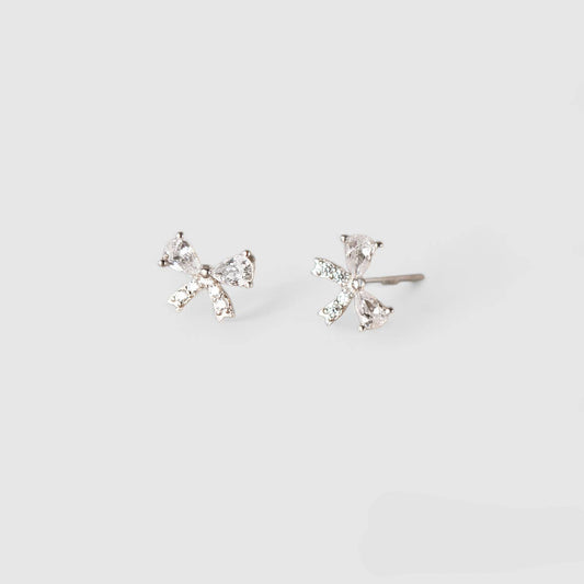 White Leaf - Cubic Zirconia Bow Earring in Sterling Silver