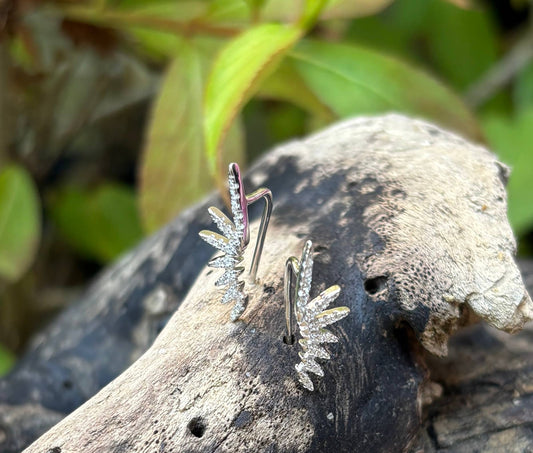Ocean Ripples - 925 Sterling Silver Cubic Zirconia Wing Earrings
