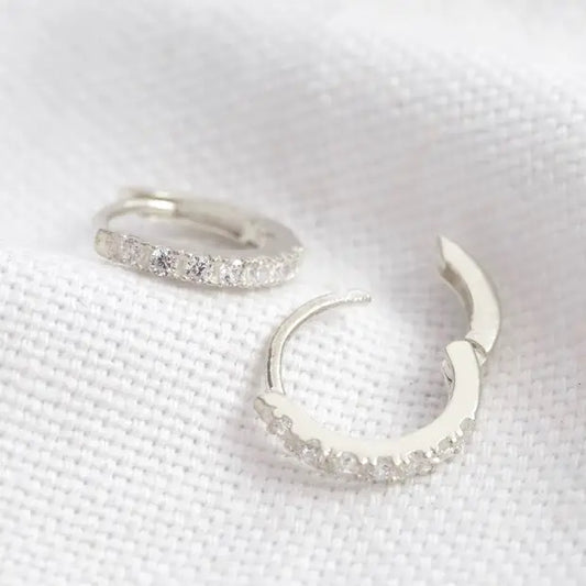 Pink and Green Baguette Crystal Huggie Hoop Earrings