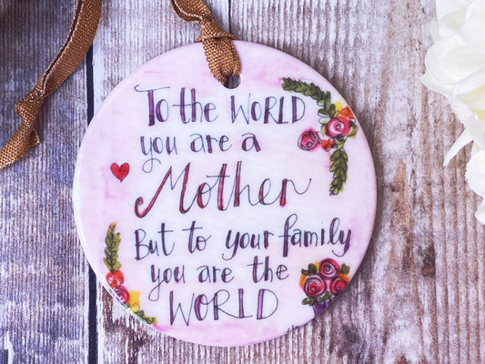 Little Heart - To the World you are a Mother Little Ceramic Hanging Circle
