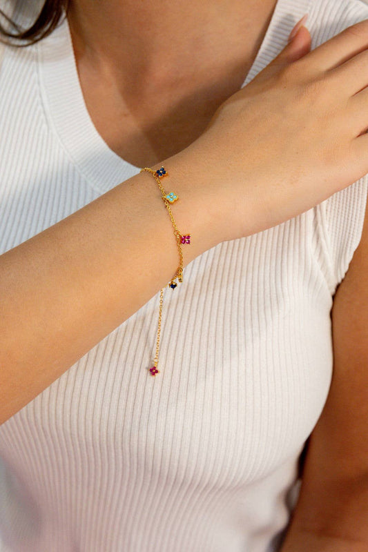 Last True Angel - Flower Charm Droplet Bracelet in Multi & Gold