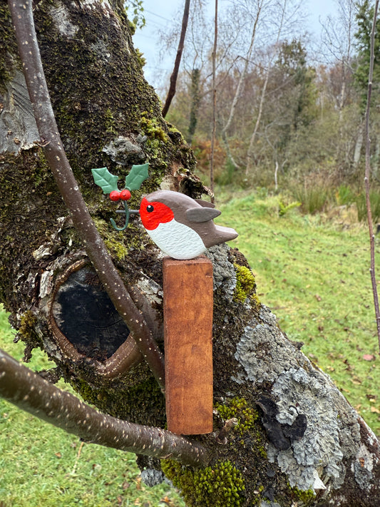 Rustic Robin wooden and tin ornaments by Shoeless Joe