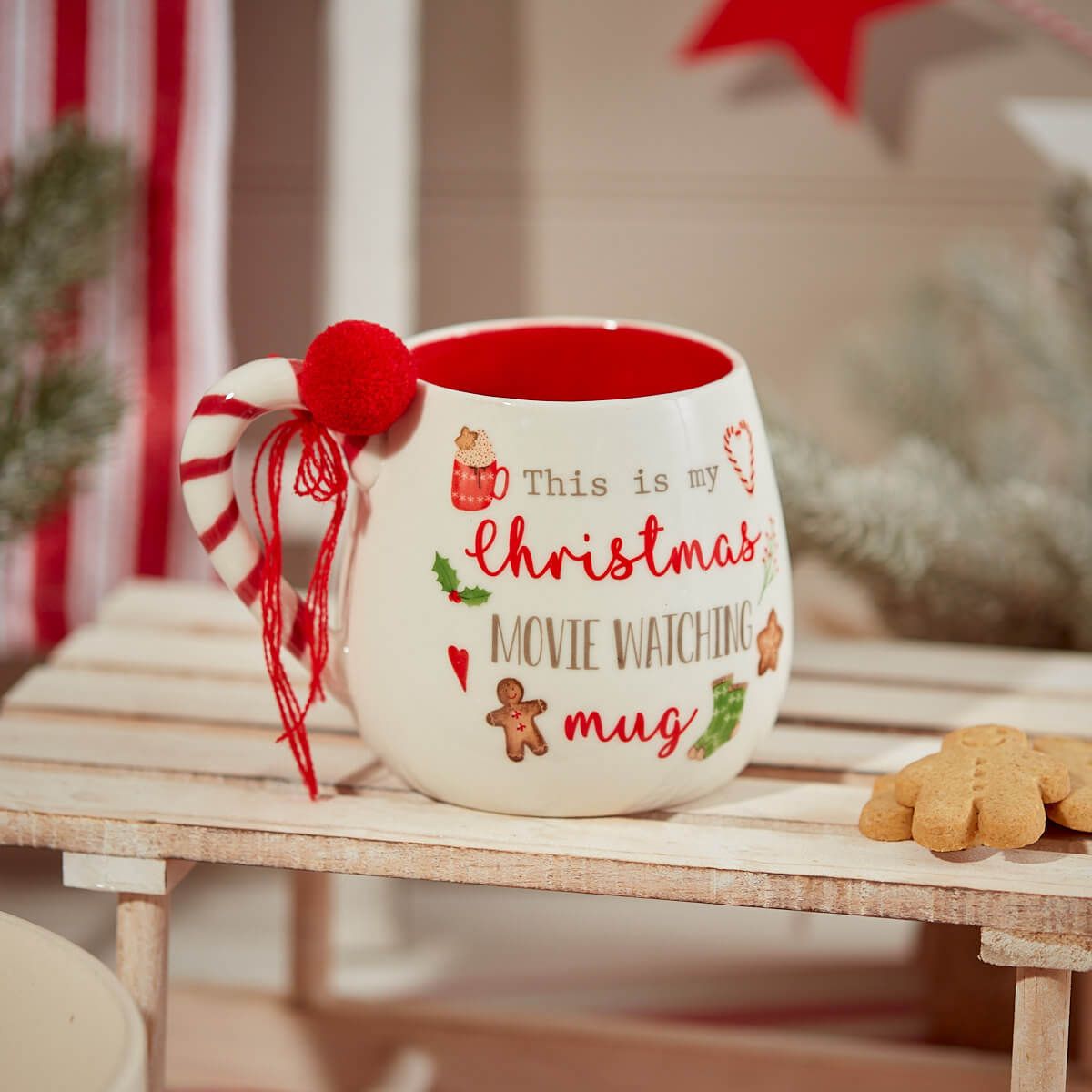 This wonderful mug is perfect for any big Christmas fan! 'This is my Christmas movie watching mug' with a little red pompom tied to the handle, is the perfect addition to any festive fanatics cupboard. Ideal for a marshmallow laden hot chocolate to enjoy whilst watching your favourite Christmas film.