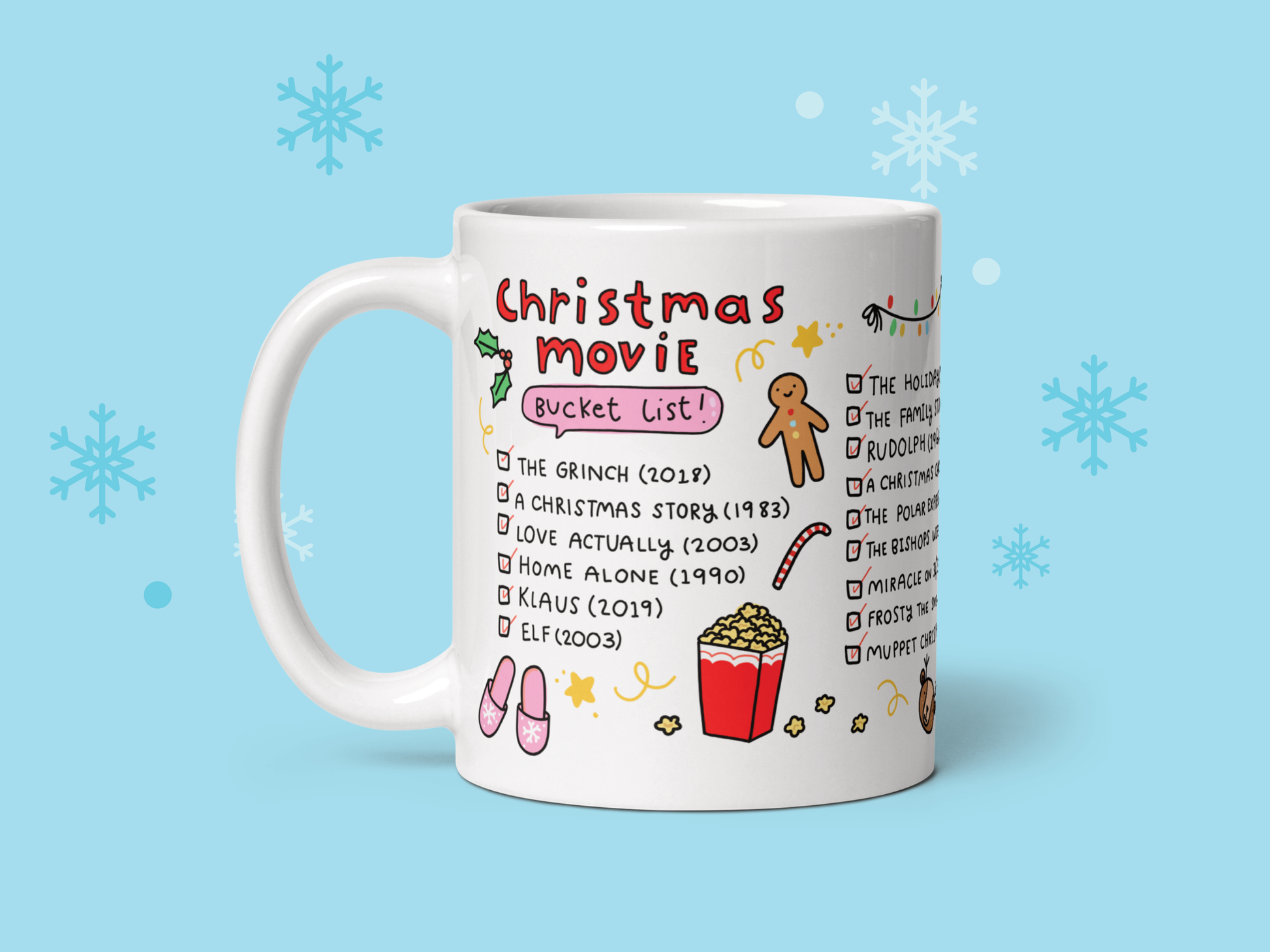 Christmas mug , Christmas Movie Bucket list, Christmas Gift.