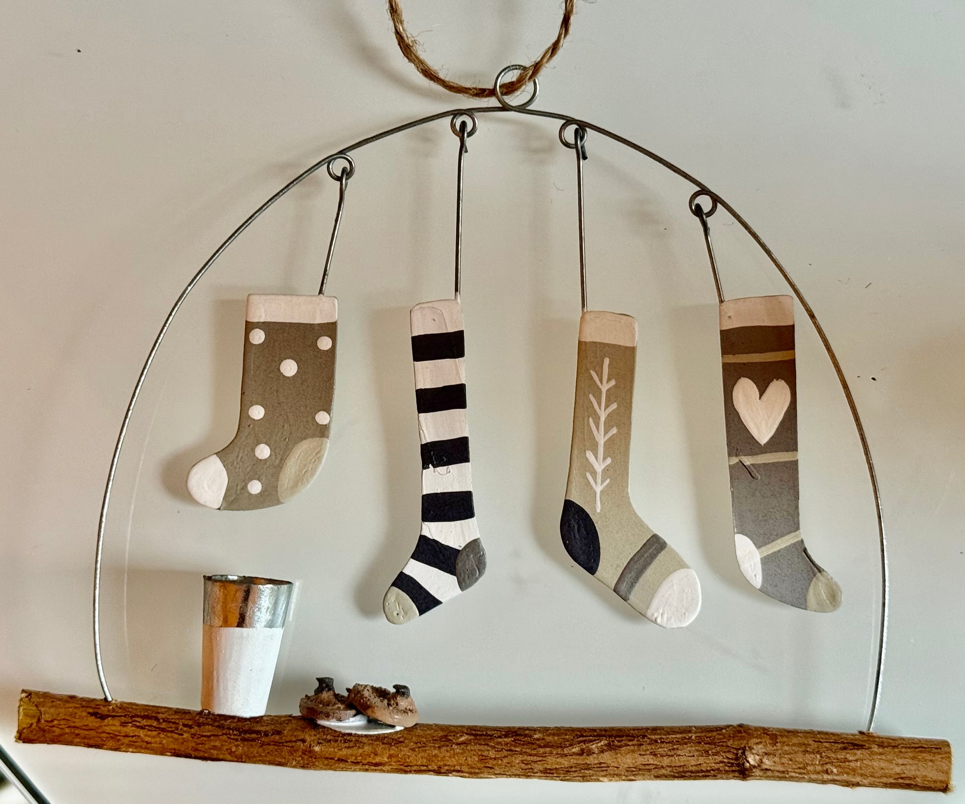 Four Neutral Christmas Stockings hanging decoration by Shoeless Joe