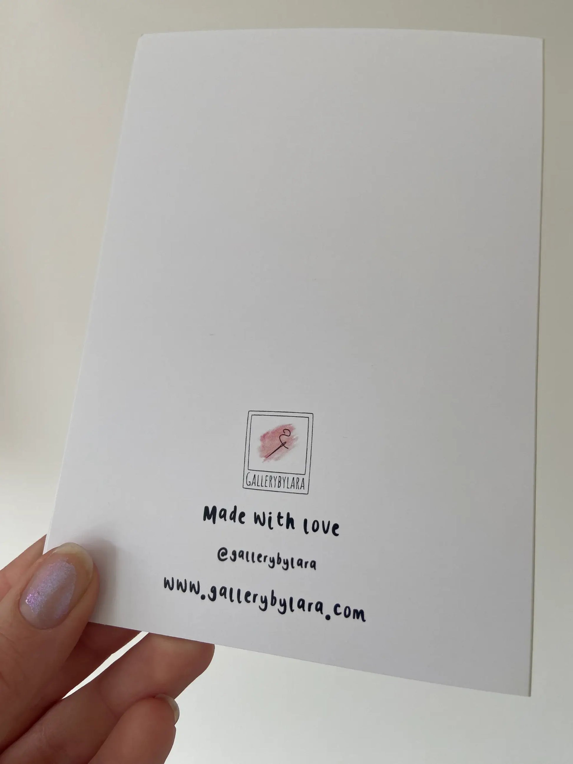 A6 birthday card featuring a cake and the phrase "hip hip hooray". The card comes with a kraft brown envelope and is blank on the inside. It also features the Gallerybylara branding on the back of the card.