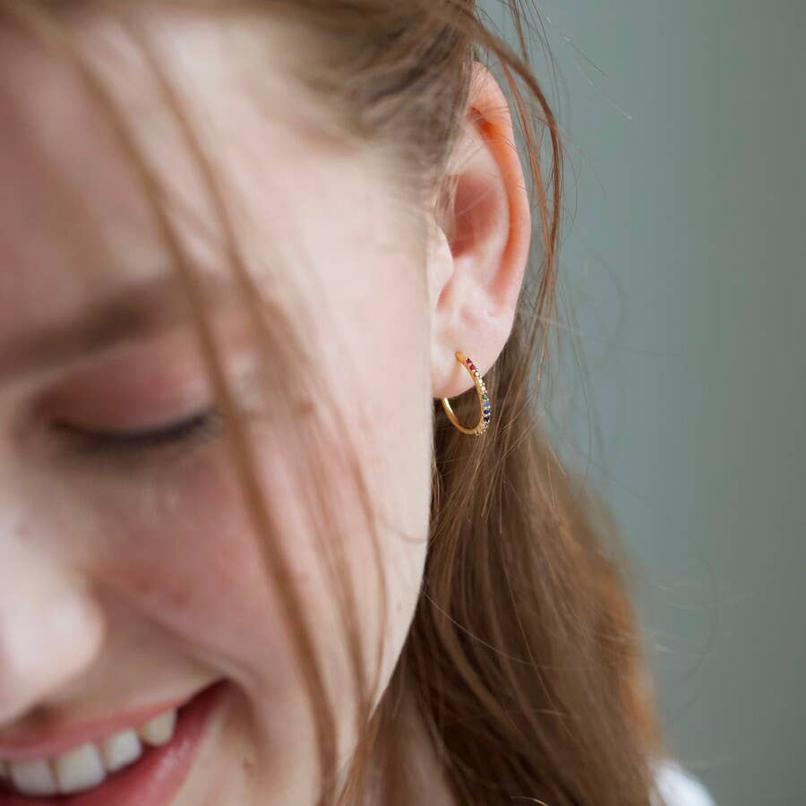 Lisa Angel - Rainbow Crystal Hoop Earrings in Gold