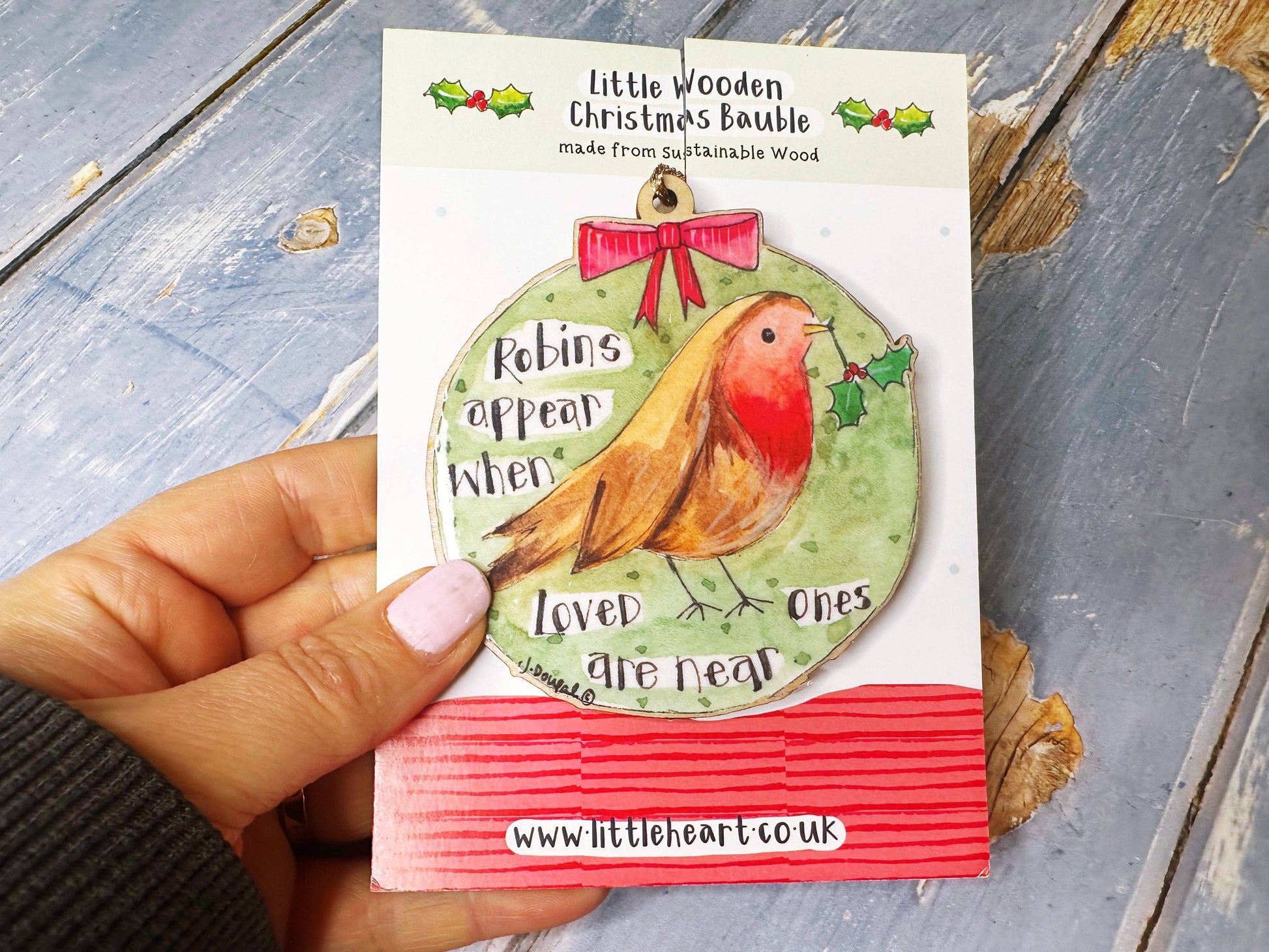 Little Heart - Wooden Hanging Robins Appear Little Christmas Decoration