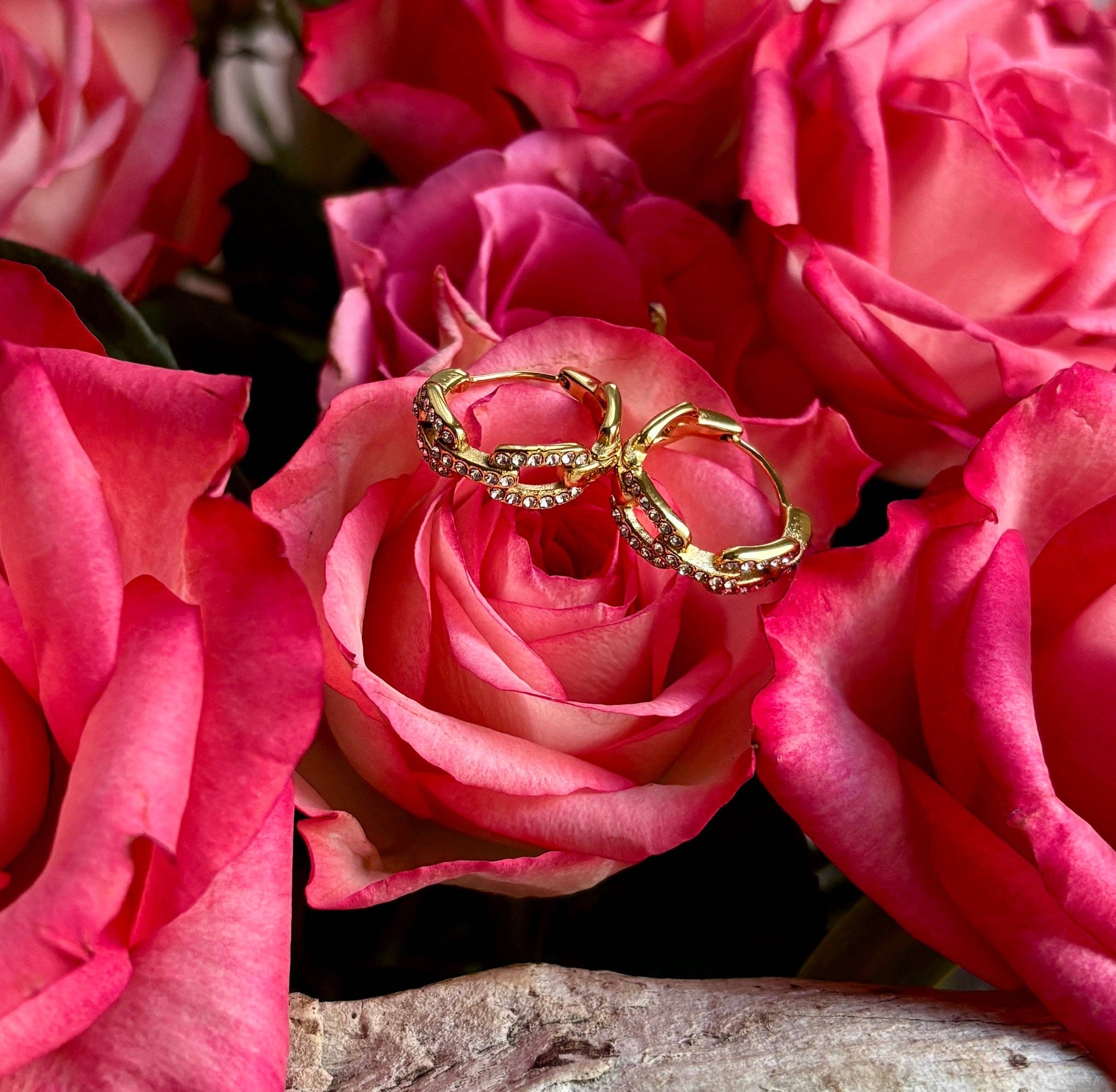These hoop earrings feature sparkling cubic zirconia links, creating a chic and modern chain effect design. Perfect for adding a touch of glamour to both casual and evening looks.