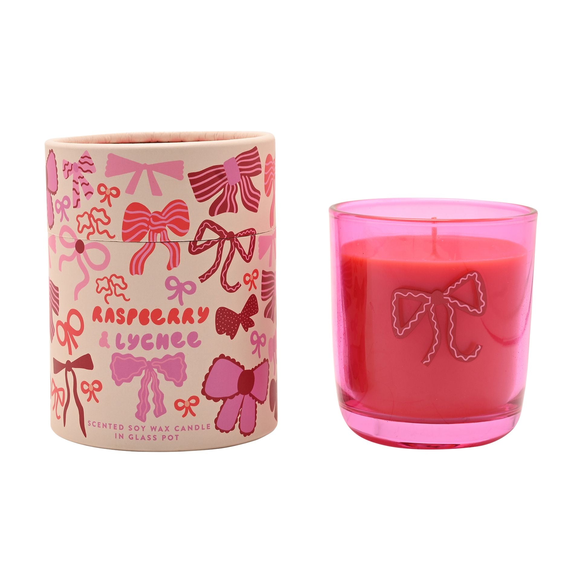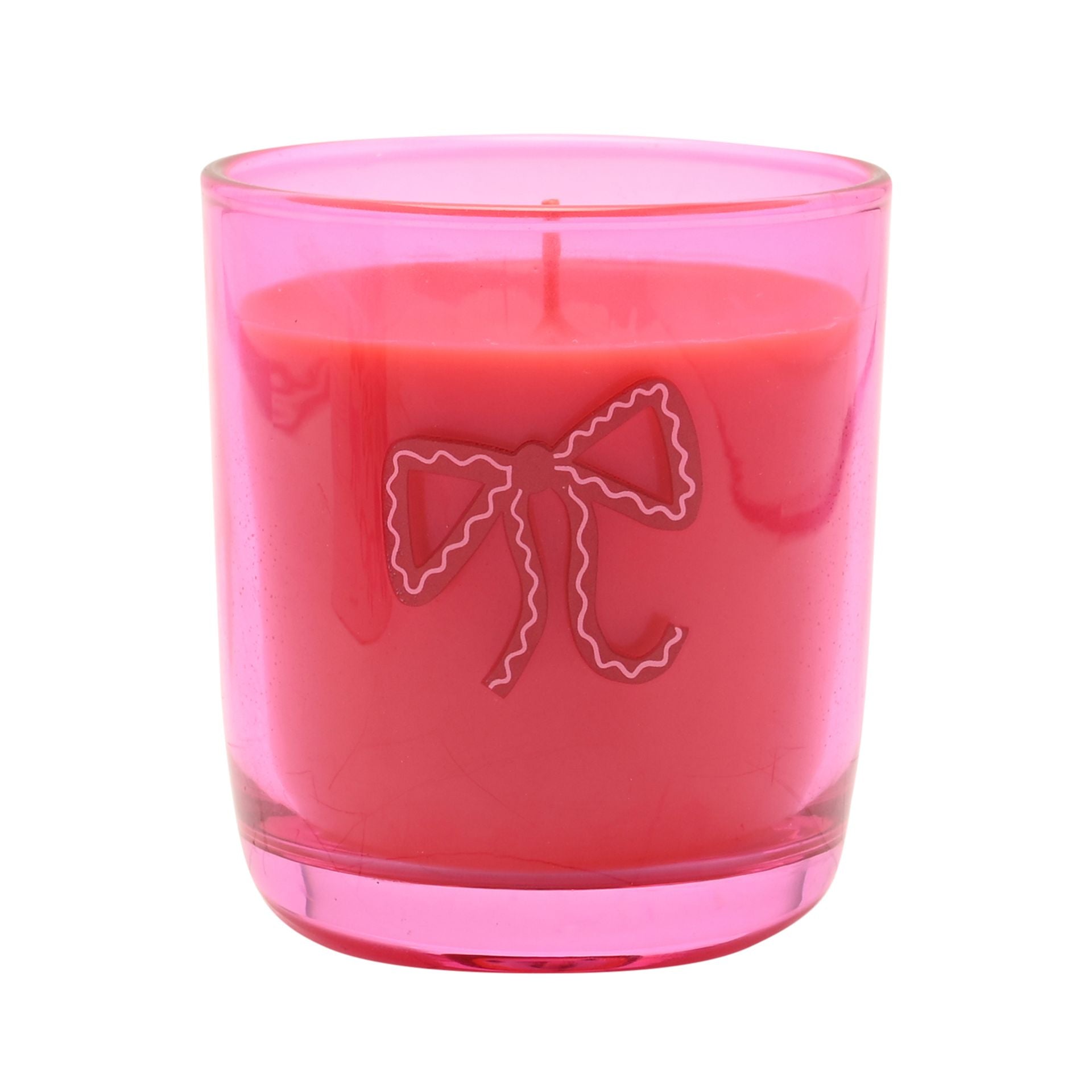 RASPBERRY BLOSSOM PINK GLASS FRAGRANCED CANDLE - BOWS