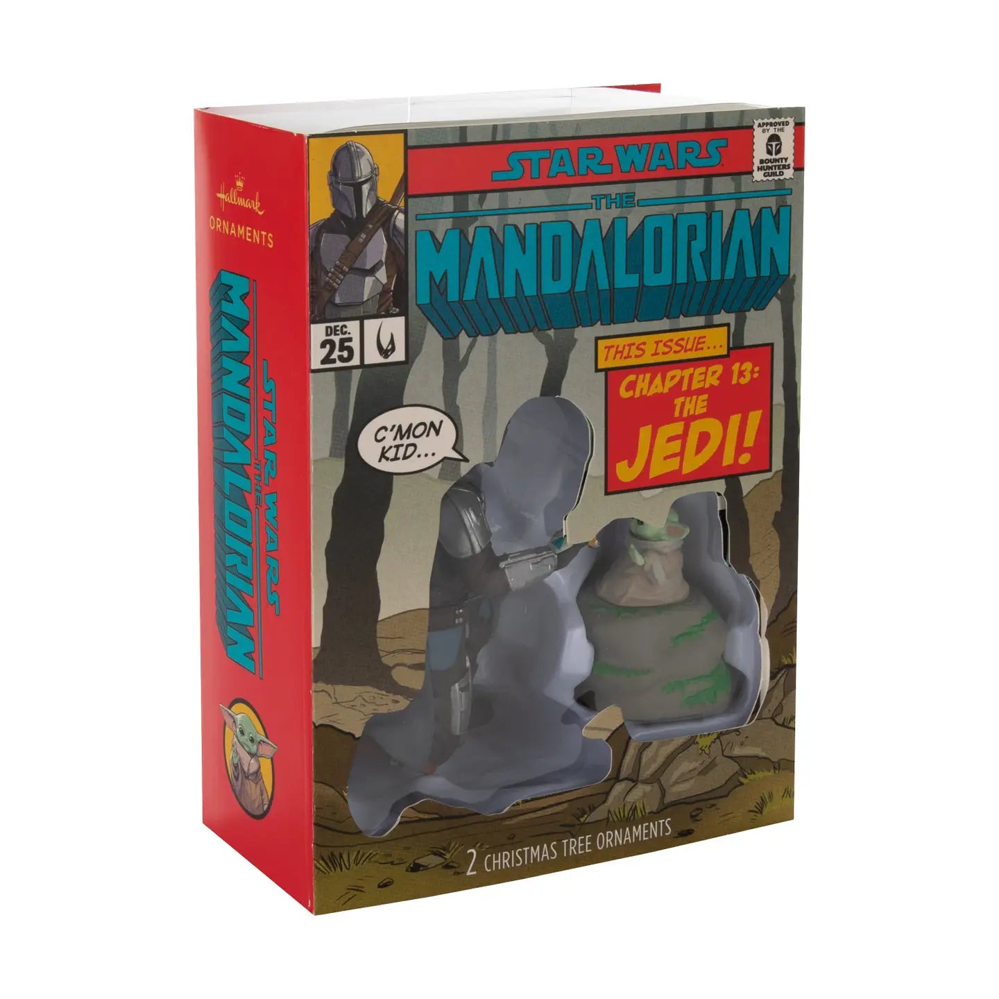 Bring the intergalactic adventures of The Mandalorian™ to your home with these hanging ornaments featuring Din Djarin and the foundling Grogu™. Made of hardwearing resin, this set of two ornaments show the story between Din Djarin kneeling in front of Grogu™. Both ornaments come complete with white ribbon for ease of hanging. This ornament set comes complete in a The Mandalorian™ comic book themed display box. Hallmark Ornaments are a great way to commemorate hobbies, life events and individual interests in movies, games and more. Each festive and collectible ornament is perfect for sharing with family and friends. The perfect collectable gift for Star Wars™, The Mandalorian™ and Grogu™ fans. These hanging ornaments are the perfect gift for hanging up around the home at any time of year, and they look wonderful as Christmas tree decorations. Ornaments Measure: (Mandalorian) 10.1cm by 5.7cm by 7.6cm, (Grogu™) 5.7cm by 3.8cm by 3.8cm. This is not a toy. For decorative use only. Storied Moments: Star Wars
