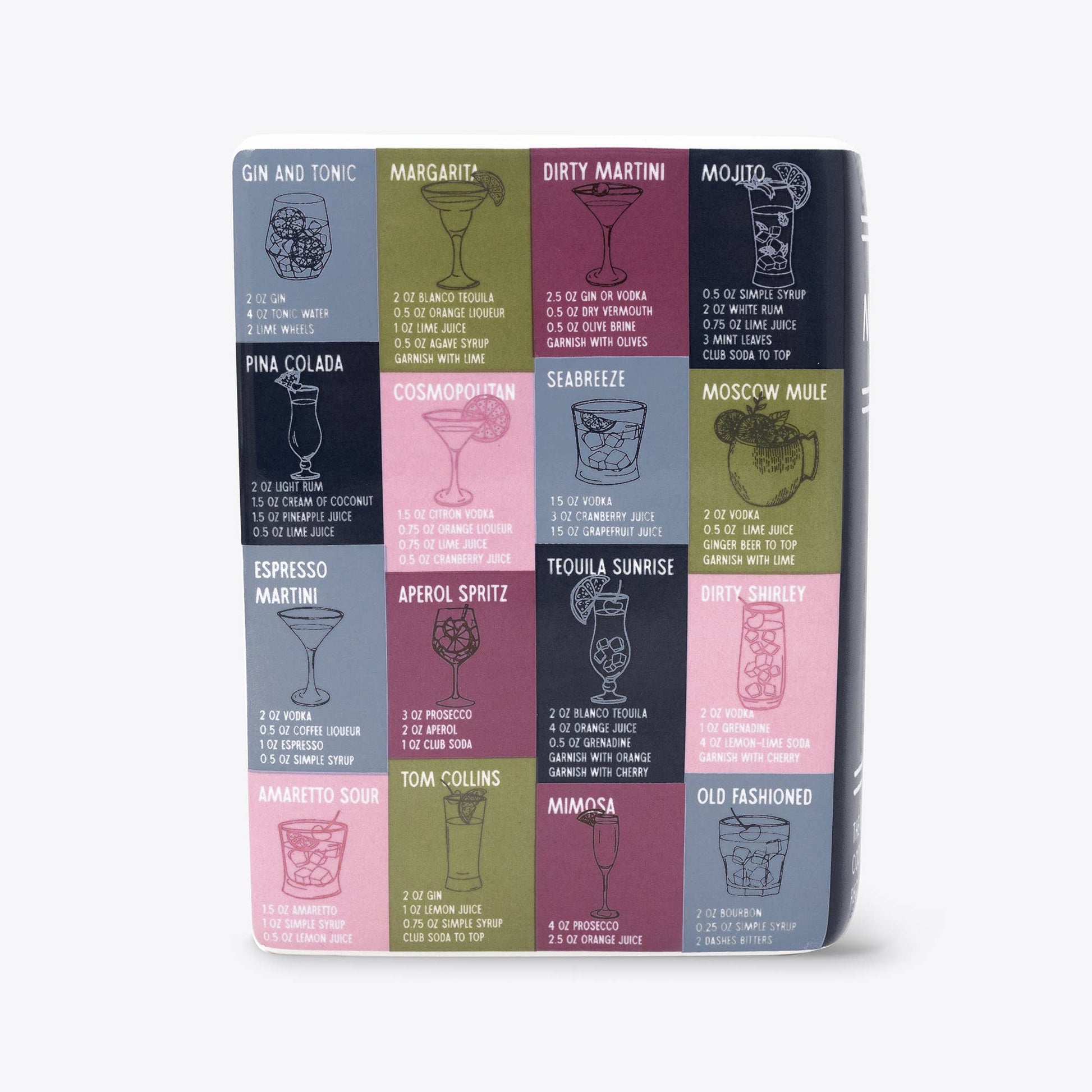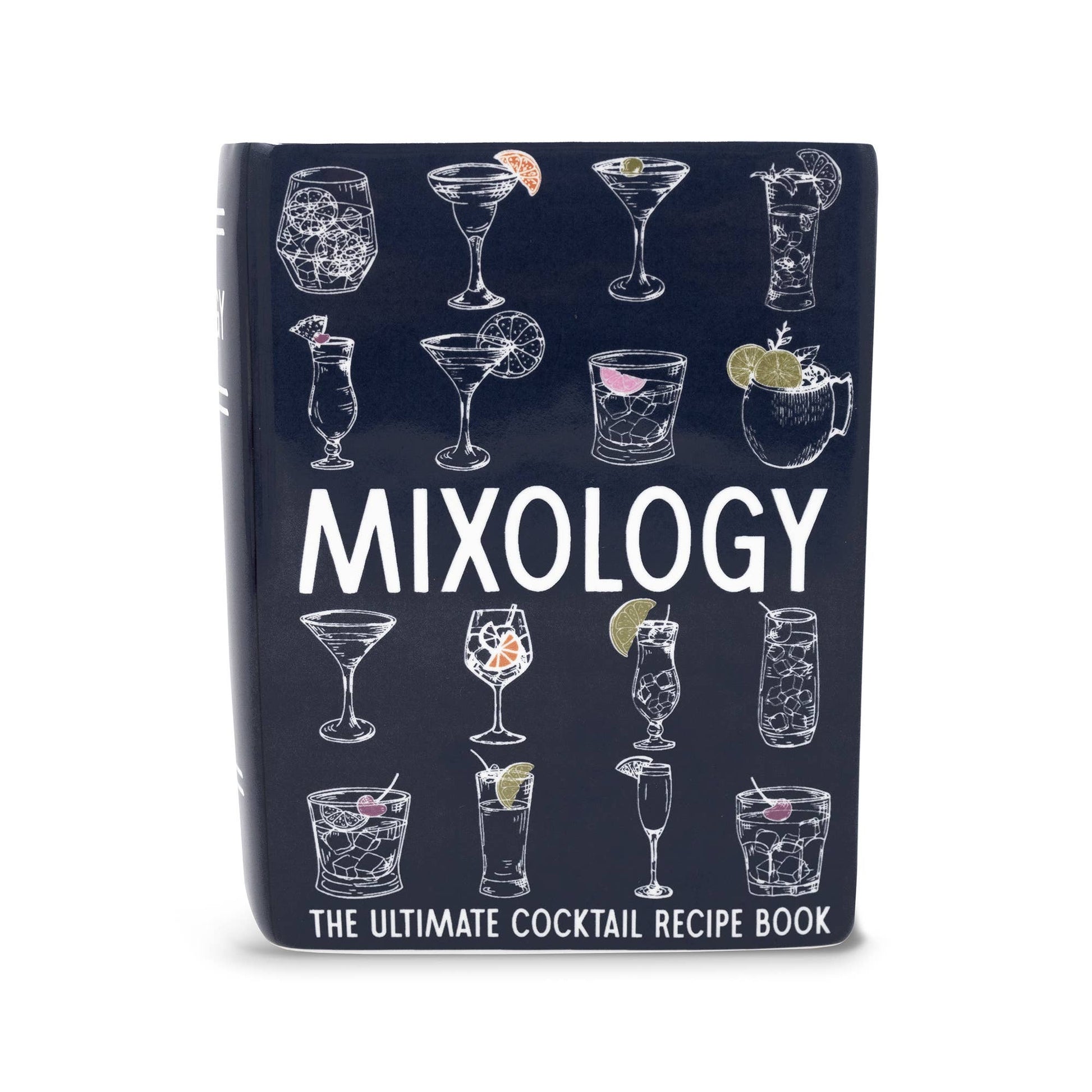 Our small ceramic book vase is the perfect piece for any book lover's or aspiring mixologist's space. Designed to mimic a hardcover recipe book, the vase features sculpted pages with a wide top opening for flowers, desk supplies, bookmarks, and more. The cover features art inspired by a classic mixology to adorn your kitchen or bar cart with bookish charm.